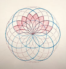 In ‘THE SPINOZA LILY: The Seed’ the rhombic construction lines change (from white or black) as they cross the shared border of the Yin and Yang. See RHOMBI P.24